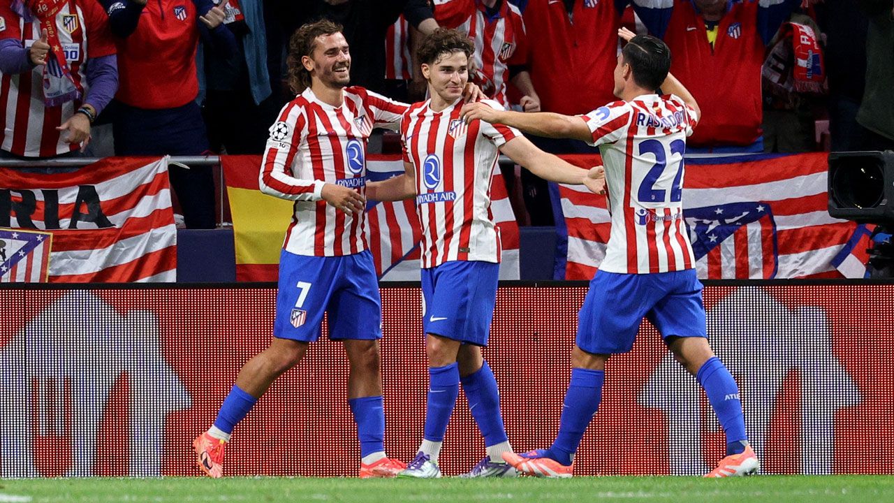 Antoine Griezmann vivió una noche especial después de romper la barrera de los 200 goles como futbolista del Atlético, marcó doblete y redondeó una buena primera parte de los locales al 45+1 con su primero de la noche tras un jugadón de Julián Alvarez por la banda izquierda.