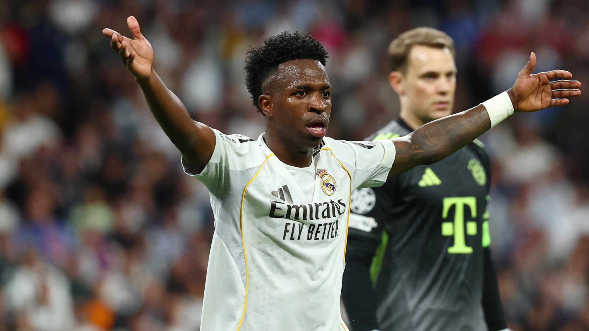 El antiguo internacional holandés y exmadridista se sumó así a las críticas por fingir sobre el terreno de juego contra el extremo brasileño, quien también fue pitado por parte del público local tras fallar una ocasión clara cuando el Real Madrid perdía por 0-2 en el partido de ida de cuartos de final, que terminó con un marcador de 1-2.