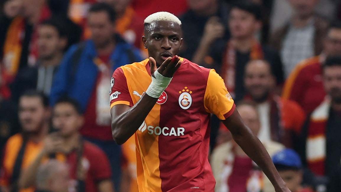 Tan solo en la Champions League, Osimhen suma seis tantos de los 10 que el cuadro turco consiguió en la fase de liga: tres de penal, uno de cabeza, uno de derecha y otro de zurda.