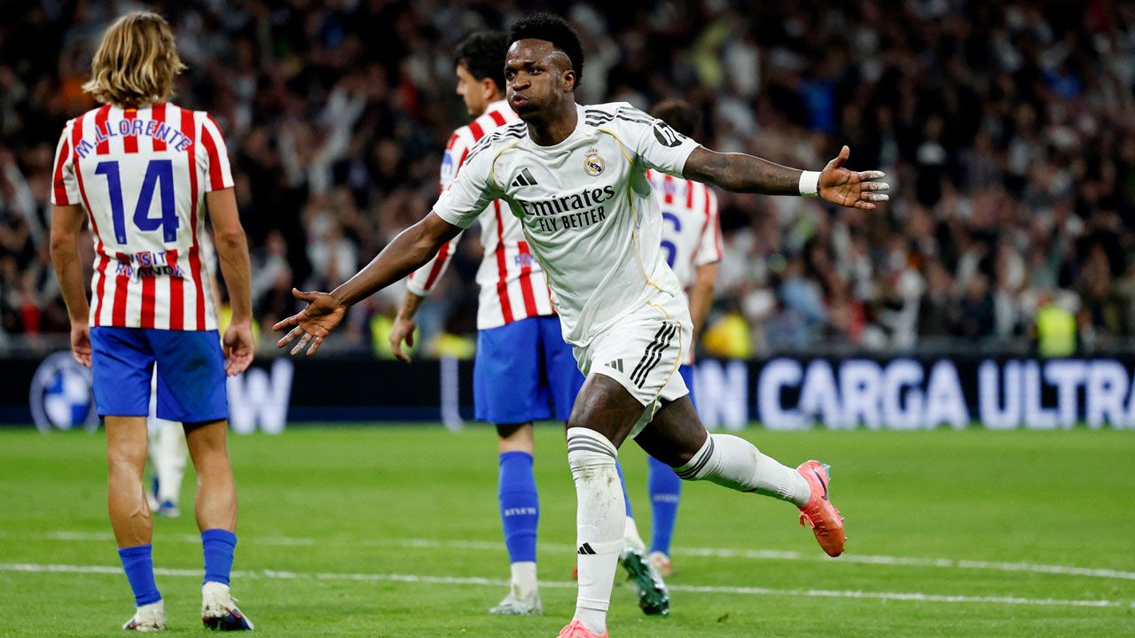 Real Madrid derrotó 3-2 al Atlético de Madrid y sigue peleando por La Liga, el derbi lo definió Vinícius Jr. con un doblete en 20 minutos que dejó al conjunto ‘Merengue’ a cuatro puntos de Barcelona. Los ‘Colchoneros’ pegaron primero, pero el ‘7’ marcó la diferencia cuando el partido estaba empatado a dos goles. 🏁 FP: @RealMadrid 3-2 @Atleti