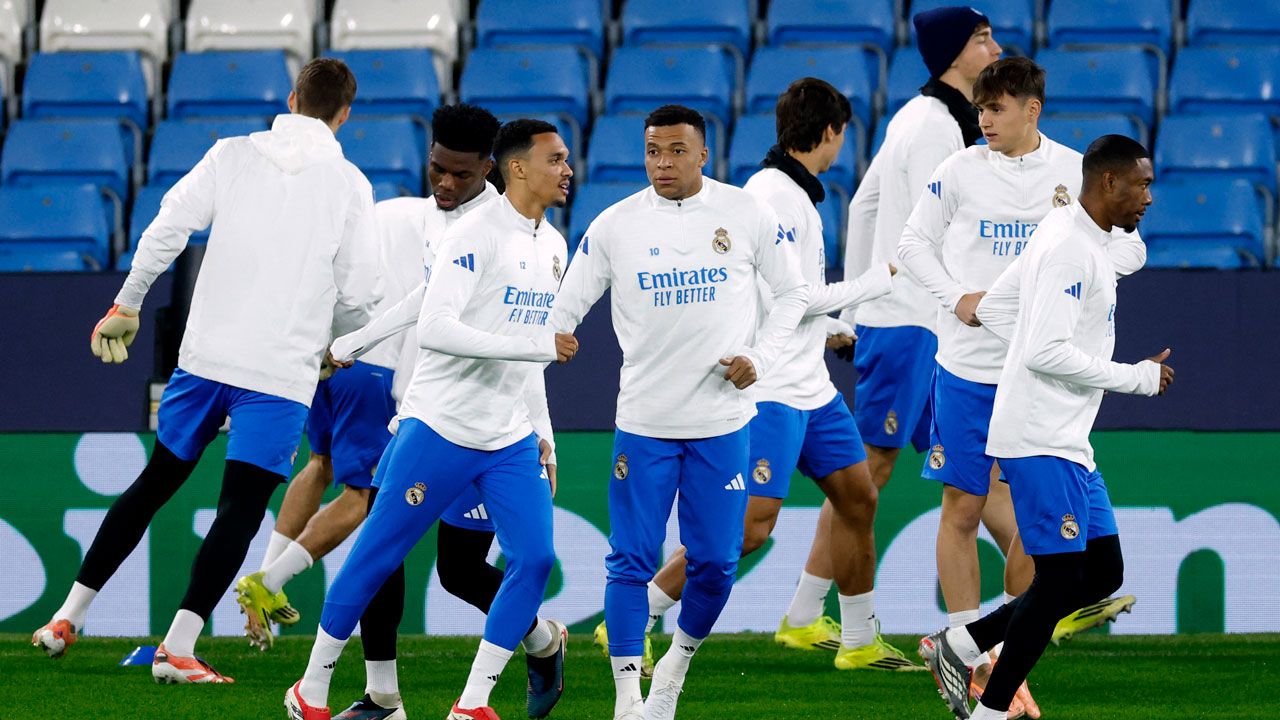 Mbappé que encabezó la nómina de regresos después de jugar 66 minutos frente a Brasil y 12 ante Colombia, se entrenó con total normalidad. Igual que sus compañeros de selección, Tchouaméni y Camavinga, que trabajaron a las órdenes de Arbeloa sin incidencias.