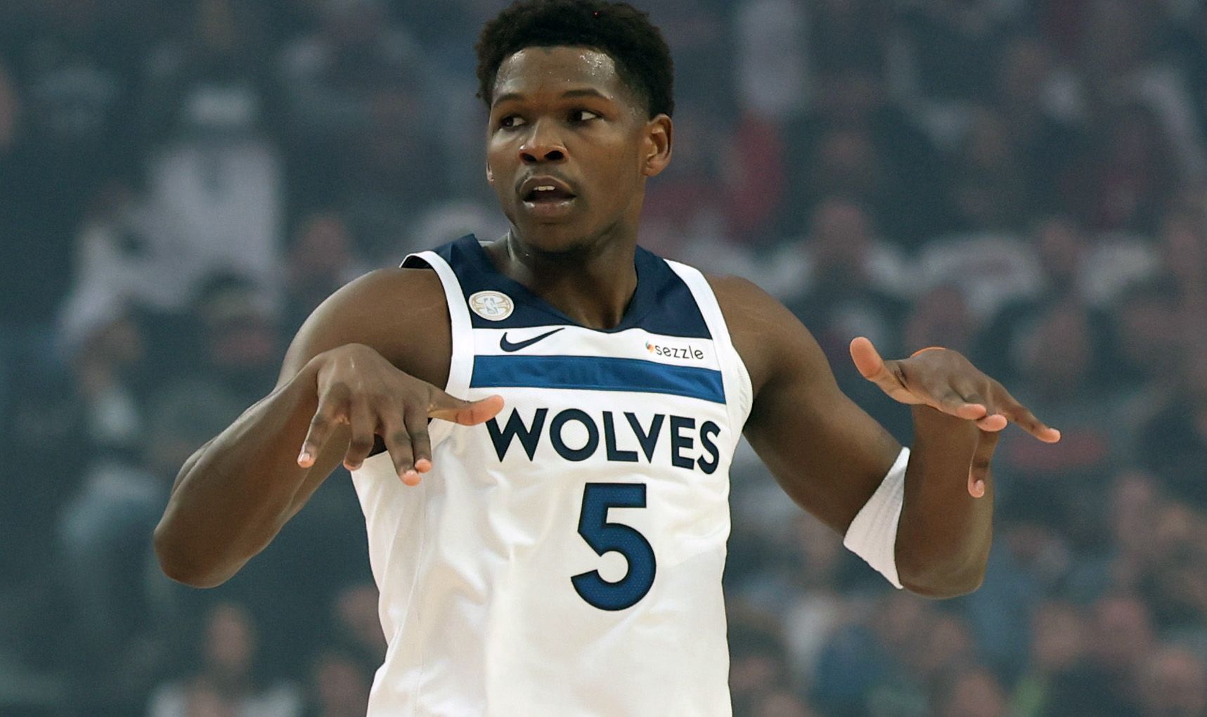 Logró una bandeja complicada en el tráfico durante un contragolpe con 3:07 transcurridos del encuentro ante Indiana, recibiendo un fuerte contacto antes de buscar una falta que no fue señalada. Los Pacers pidieron tiempo muerto un segundo después, y Bones Hyland ingresó por Edwards durante la pausa.