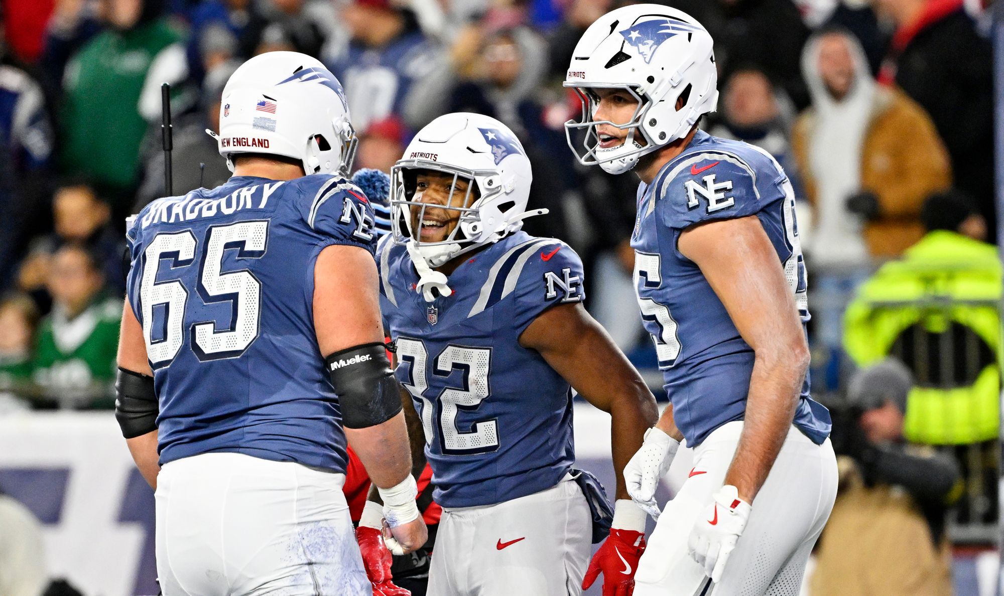 No obstante, los Patriots respondieron con dos largas ofensivas llevadas con paciencia, cada una terminando en anotación de Henderson. En el primer tiempo se fue 14-7 a favor de New England, un guiño de que la noche se pondría cuesta arriba para el equipo neoyorquino.